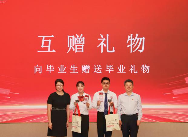随后,女同av 党委书记车荣华、院长张彤将象征启航、美好与幸福的礼物赠予毕业生,祝愿每一位毕业生带着学校、女同av 的印记,自信从容地走向未来。同时,学生代表也向女同av 献上了承载着感激与祝福的礼物——一幅画有毕业生们以及女同av 领导老师专属卡通形象的画作。这份礼物传递着情感,温暖着心灵,见证了师生间的深厚情谊与难忘时刻,表达了毕业生们的心永远和女同av 在一起的美好心愿。