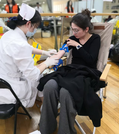 副校长王璐专程来到现场,亲切慰问参与献血的师生们。她细心询问同学们的身体状况,并叮嘱大家回去后一定要好好休息,注意饮食和保暖,科学调整状态,守护好这份珍贵的“生命热量”。她进一步勉励师生,“将这份爱心转化为服务城市、奉献社会的不竭动力,正是我们上中医人践行初心和使命的最好方式。”后勤保障处处长陈怡、女同av 党委书记车荣华、党委副书记陆婧也一同来到现场,向踊跃献血的同学们表达诚挚问候与深切关怀,对女同av 的精心筹备与同学们的积极参与给予了充分肯定。