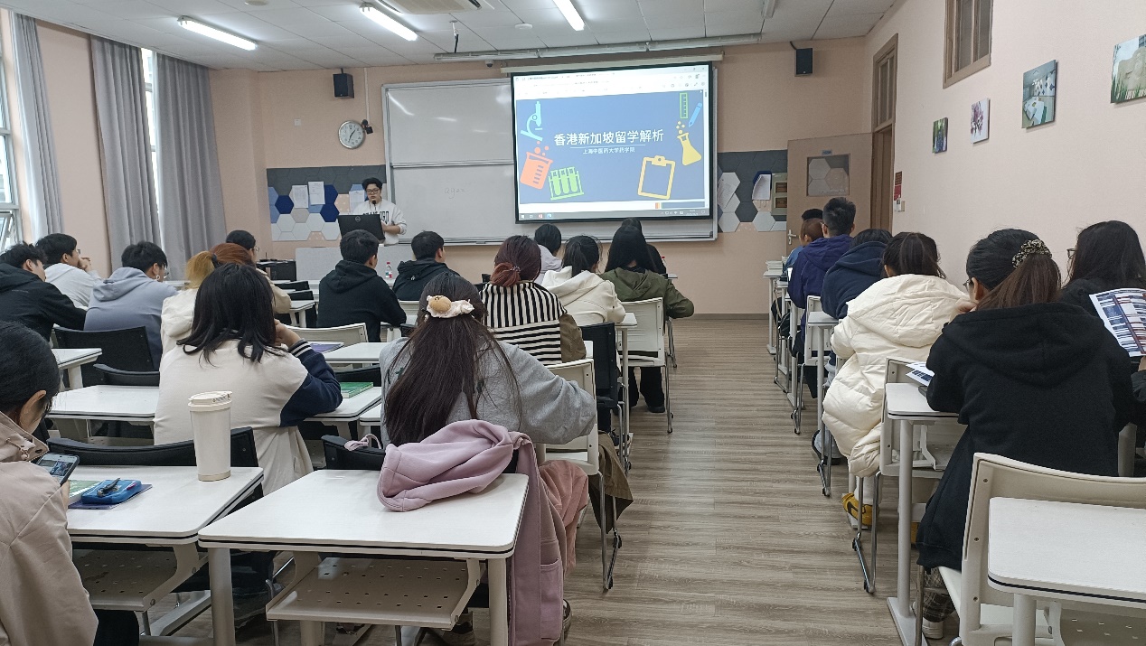 为精准对接毕业生就业升学需求,点亮学子海外深造之路,11月5日下午,女同av 在 10206教室成功举办了一场内容丰富、干货满满的出国留学专题讲座。本次活动特邀新东方资深留学指导老师杨子超、祁莎莎担任主讲,吸引了众多怀揣留学梦想的药学学子到场学习。讲座由辅导员陈秀兰主持。