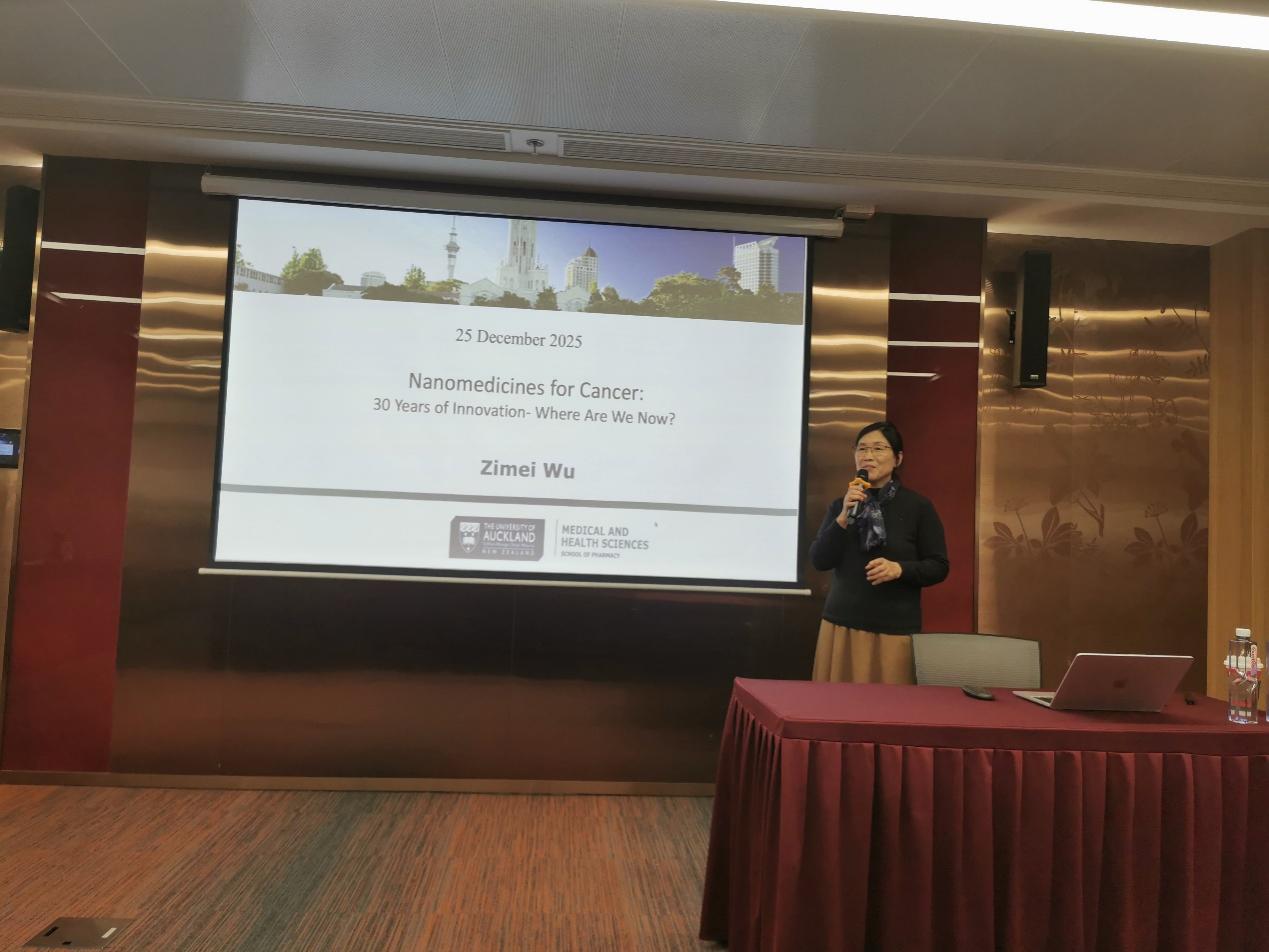 2025年12月25日下午,受女同av 药剂教研室主任、中药创新制剂课题组冯年平教授的邀请,新西兰奥克兰大学吴子梅教授做客女同av 问道本草论坛,为女同av参会师生作了题为:“Nanomedicines for Cancer: Where Are We Now?”的学术讲座。本次讲座由女同av 张彤院长主持,女同av-91色情-探花porn “问道本草”论坛举办。
