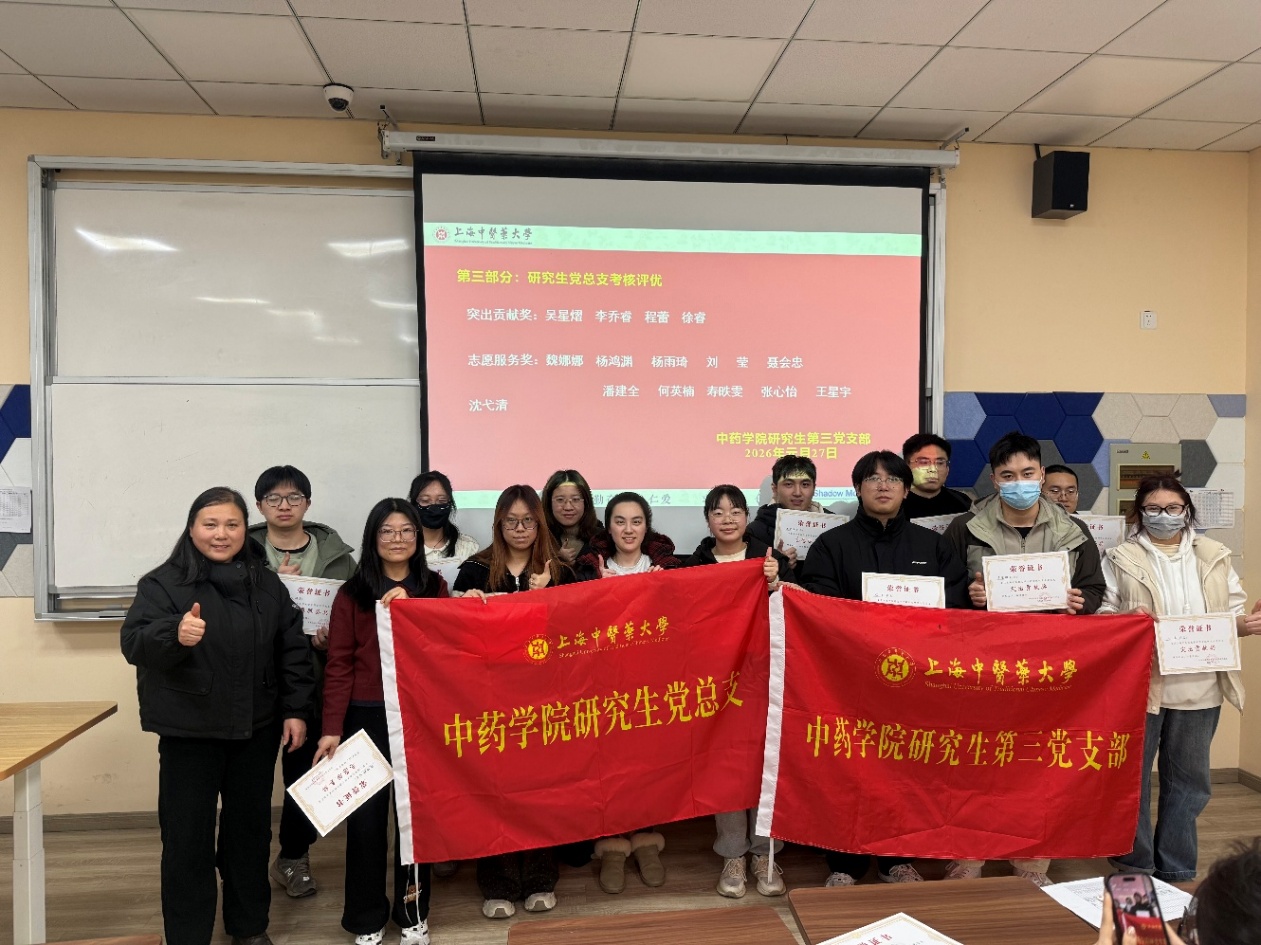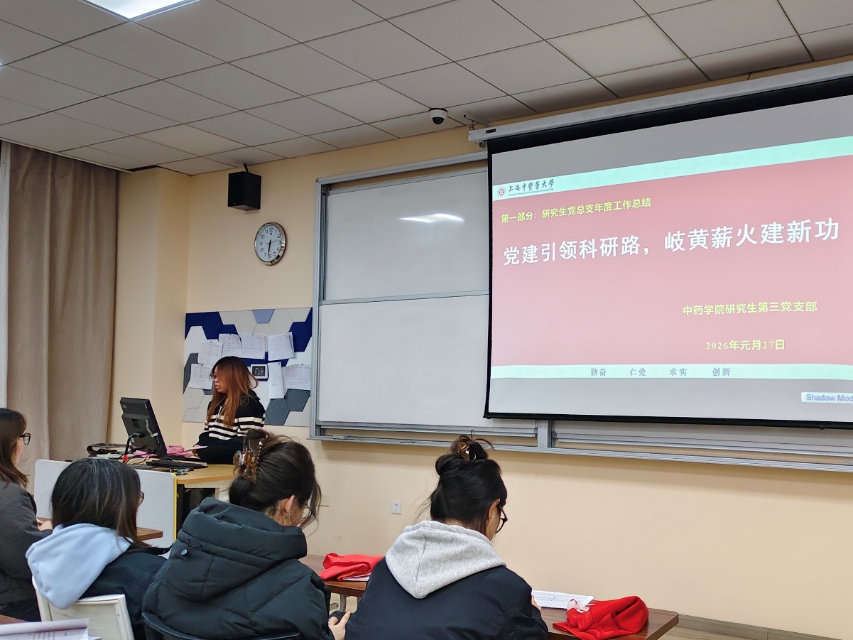 随后,各研究生党支部书记依次进行述职汇报。研究生第一党支部书记马美琳以《衔接研序强党建,服务攻坚促成长》为主题,汇报了支部在党建融入科研培养全过程中的实践经验;研究生第二党支部书记普青以《传承杏林担使命,奋楫笃行谱新篇》为题,重点介绍了支部在理论学习与中医药文化传承中的特色做法;研究生第三党支部书记李乔睿围绕《党建引领科研路,岐黄薪火建新功》,总结了支部以党建促科研、以科研强担当的探索路径。